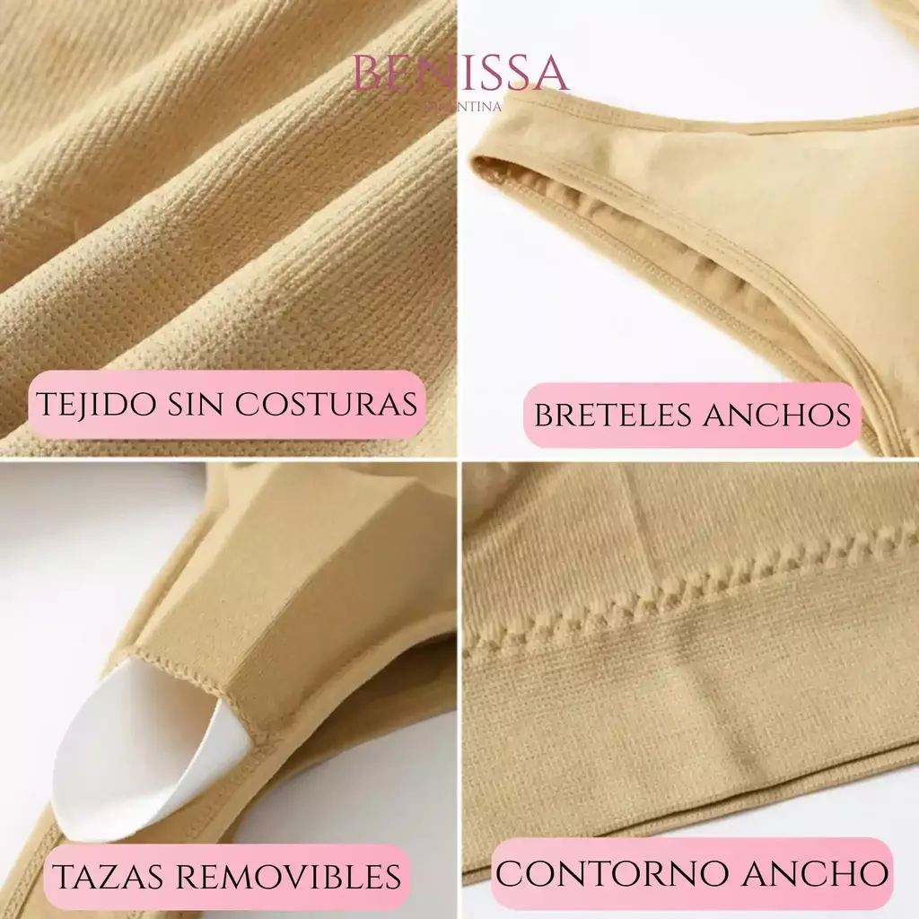 Experimenta una sensación de libertad y soporte. Olvidate de los aros que te irritan la piel y descubrí un diseño que eleva y da forma naturalmente, manteniendo tus senos firmes y en su lugar.